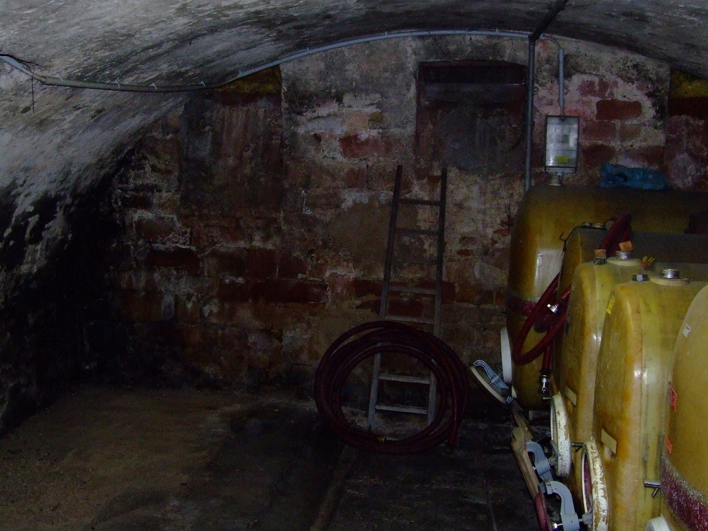 Blick in den Gewölbekeller mit Weinfässern