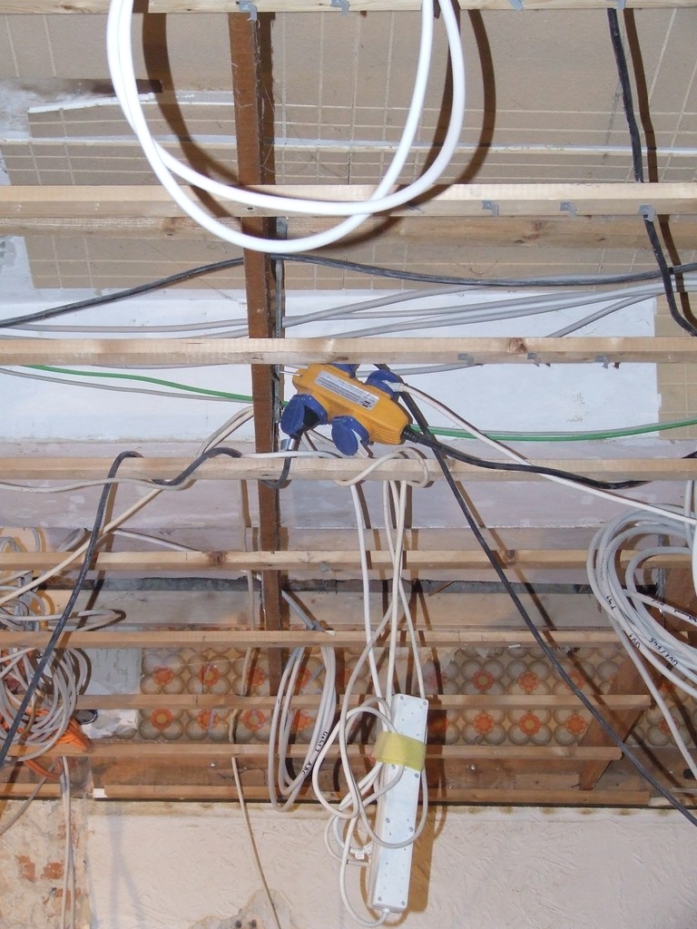Baustrom-Verteile für Beleuchtung und Maschinen an der Decke
