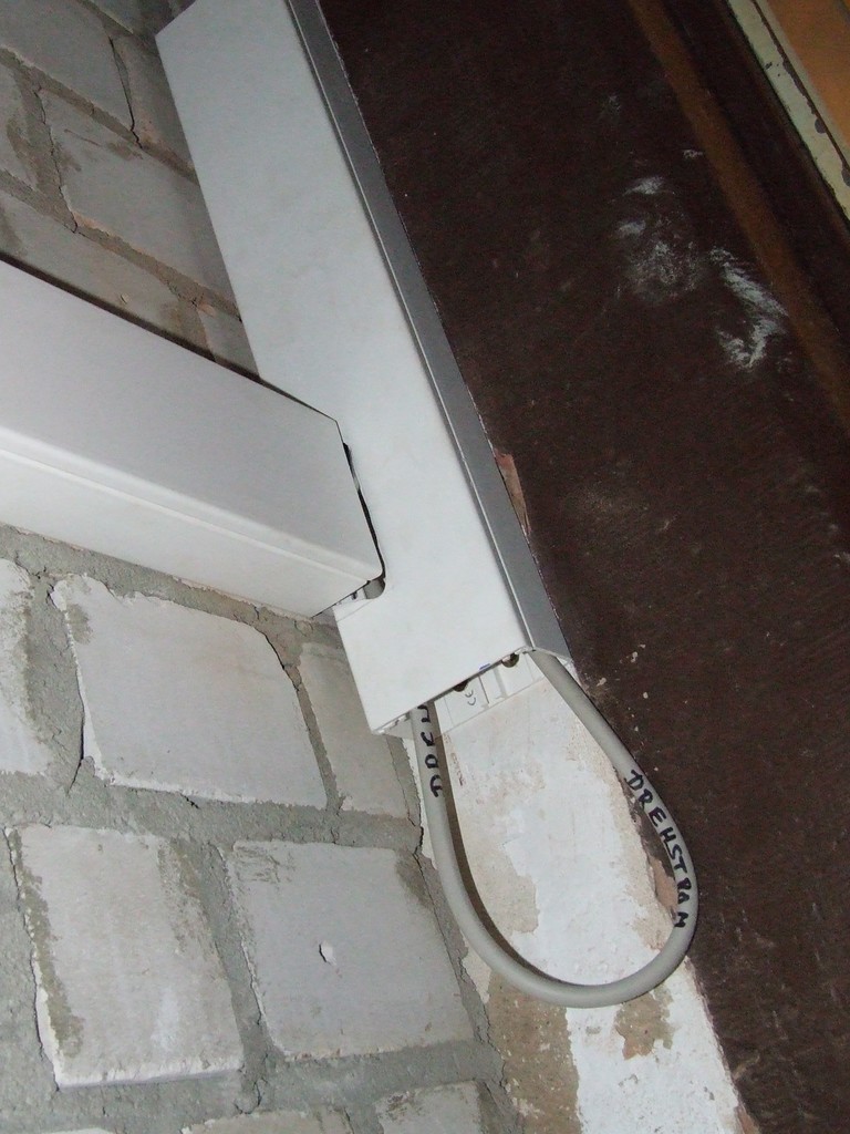 Brüstungskanal und senkrecht nach unten das Kabel für die Drehstromdose