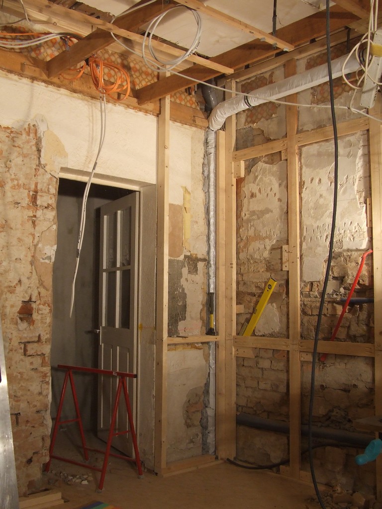 Stand 30. April 2016, Nordwand (li) und Ostwand (re) in der Küche