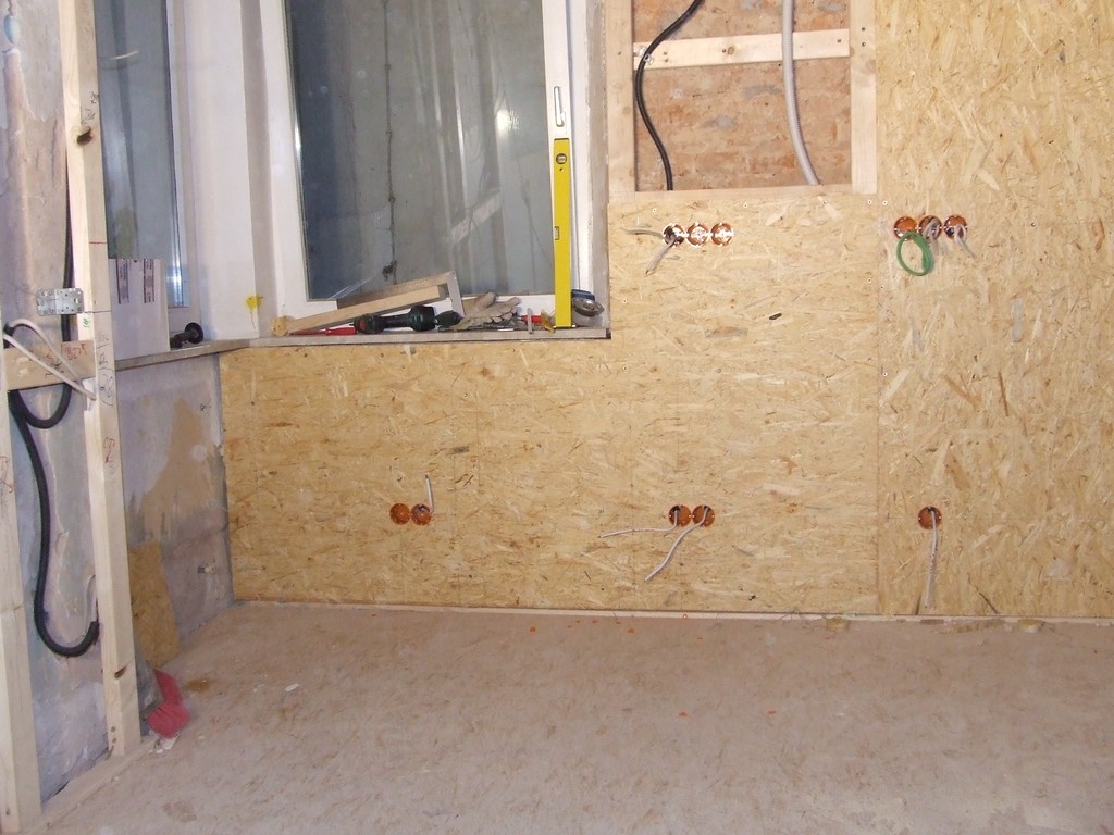 Wand mit OSB-Platte um das Ffenster herum