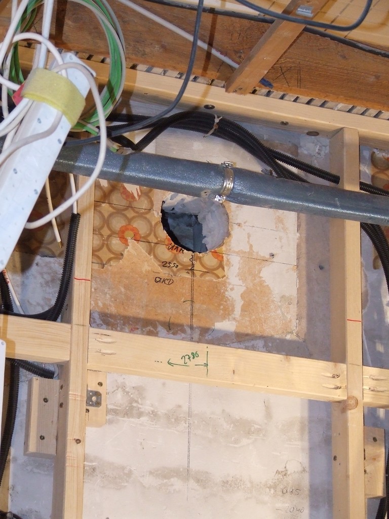 Loch für das Abluftrohr in der Außenwand (9.10.2016)
