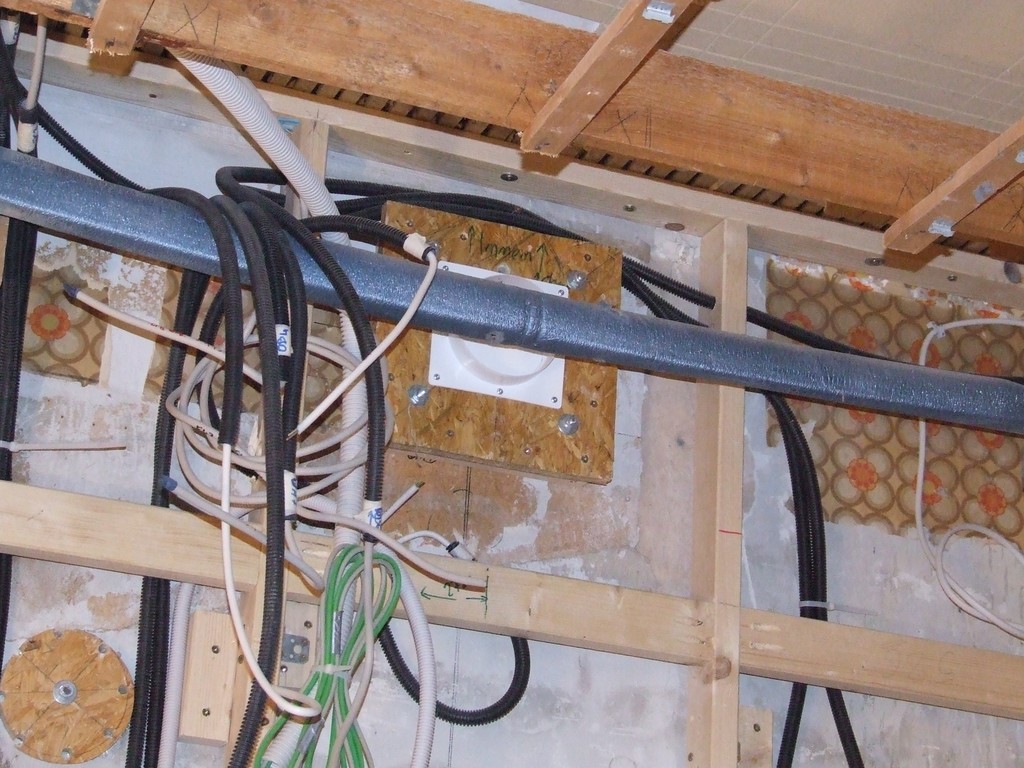 Konstruktion für das Abluftrohr fertig installiert auf der Innenseite, vor der Verkleidung der Wand mit OSB-Platten (29.10.2016)