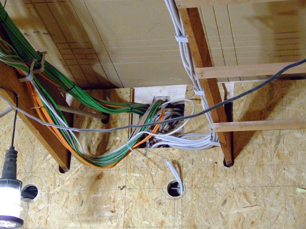 Kabeltrasse von der Küche zum Wohnzimmer, jetzt eingefasst mit OSB