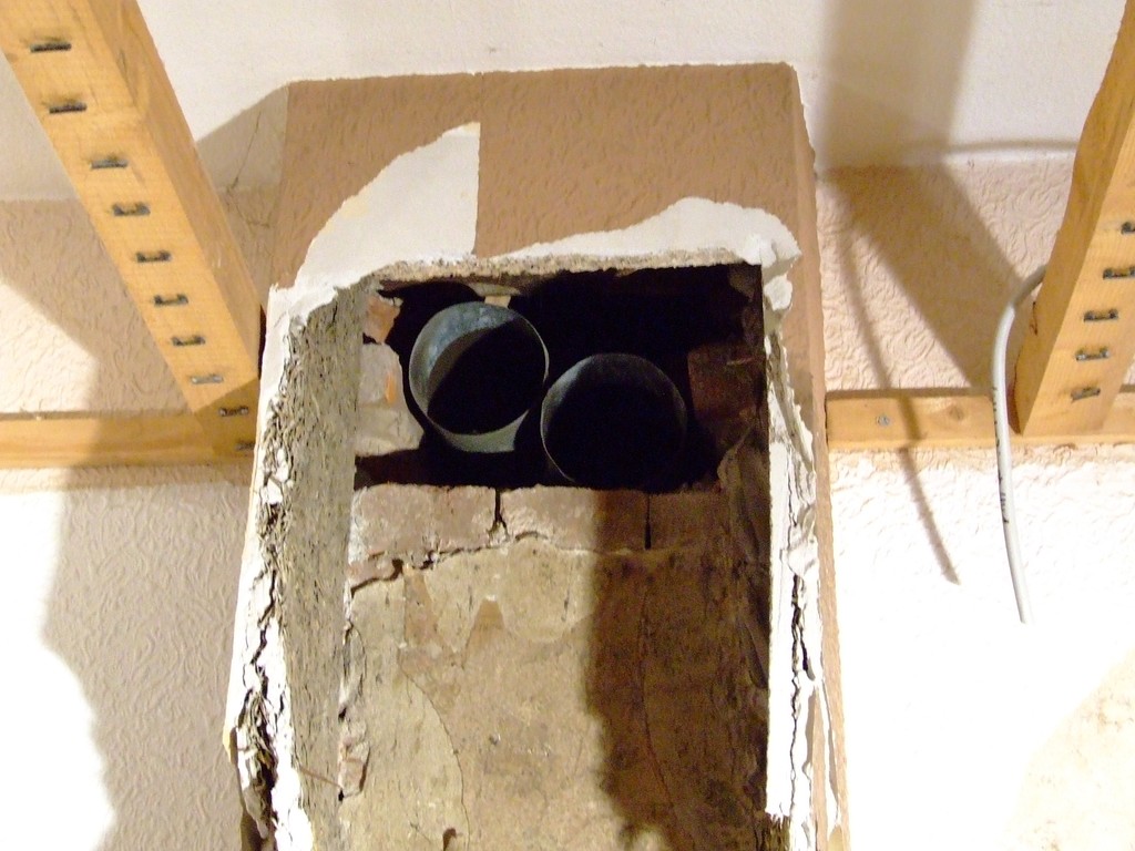Lüftungsrohre, die zwei Zimmer im Obergeschoss mit Warmluft von unten versorgt haben.