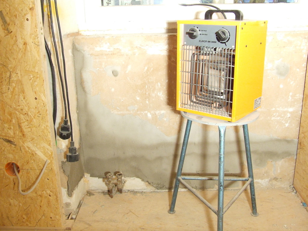 Elektroheizlüfter als provisorische Heizung in der Küche, da die Küche nun nicht mehr vom Wohnzimmer aus mit geheizt wird