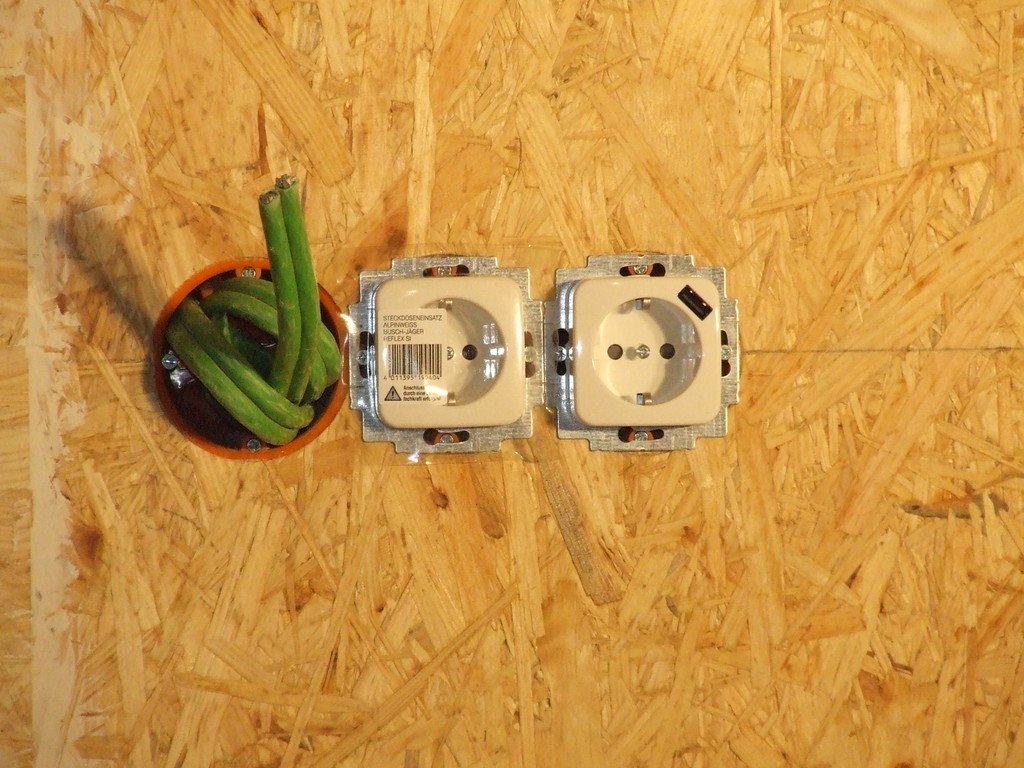 Steckdosen an der Nordwand, hier wird später der Küchentisch stehen