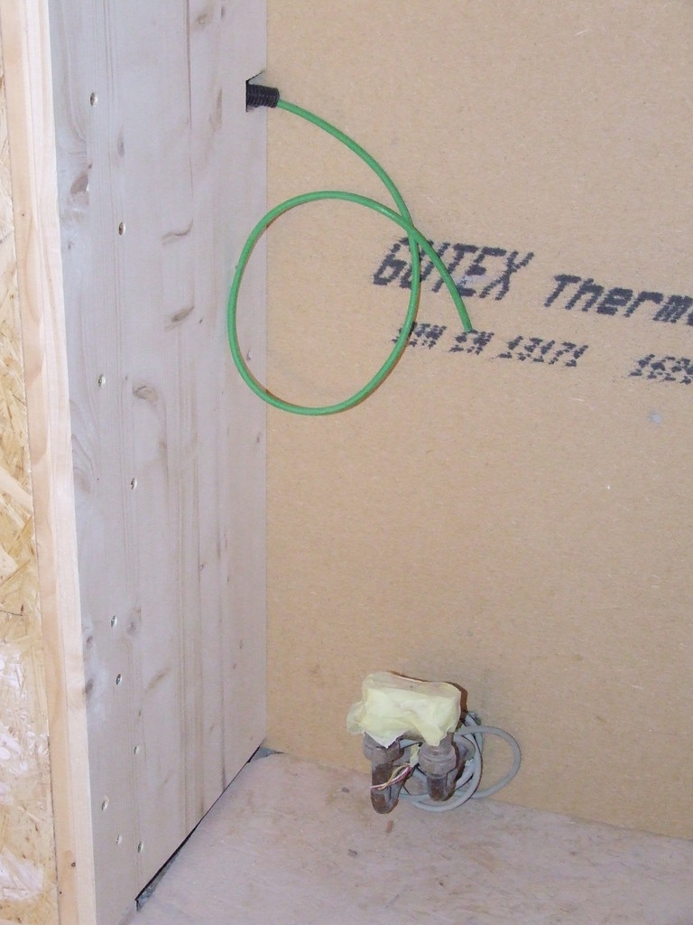 Kommunikationsleitung für das Heizungsventil hinter der Holzverkleidung