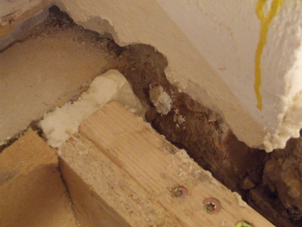 Vorbauwand mit OSB-Platte mit Bauschaum an die Außenwand angeschlossen