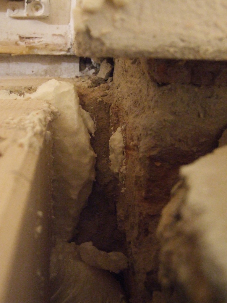 Detailaufnahme: Bauschaum hinter der OSB Vorbauwand