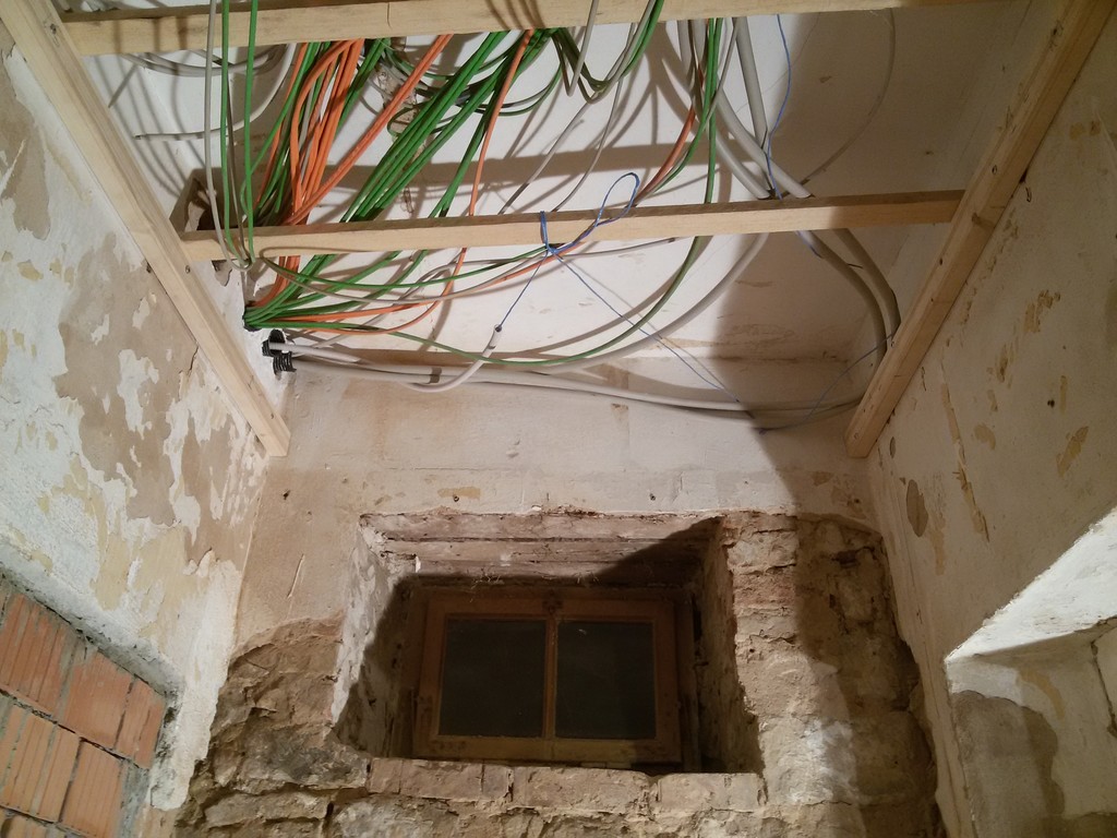 Der Fensterleibung fehlt jetzt auch der Putz.