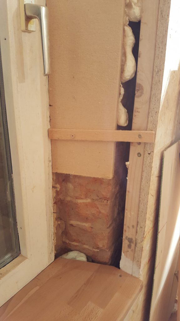 Fensterleibung Nordwand, mit 40mm Holzfaserplatten isoliert