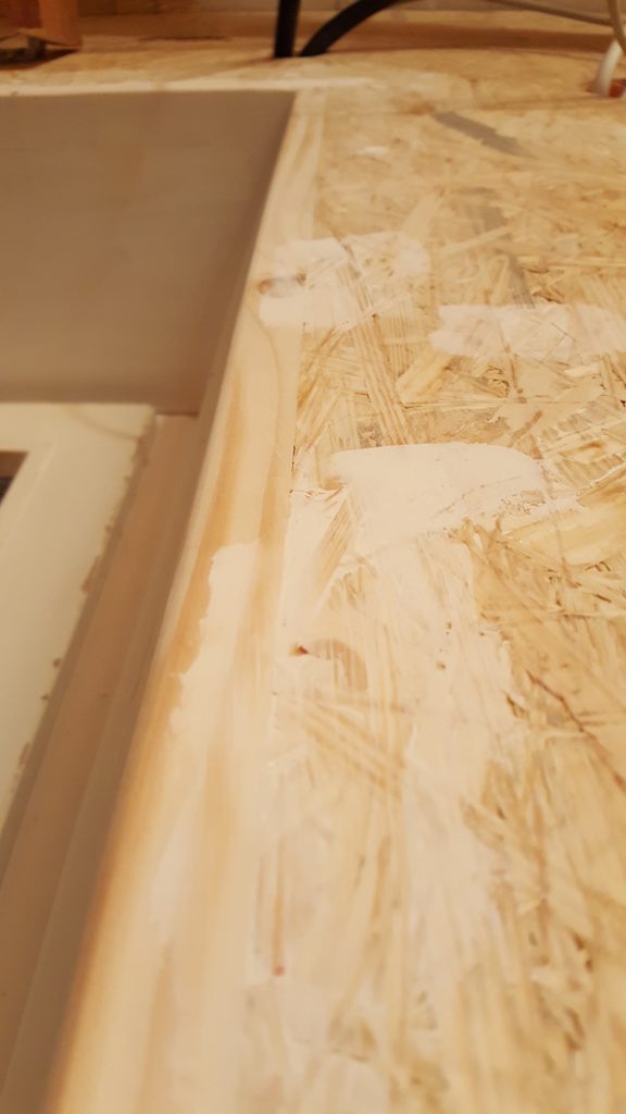 Küchenfenster Stand 29.4.2017, rechts, Fichtenbrett bündig zur Wand abgeschliffen