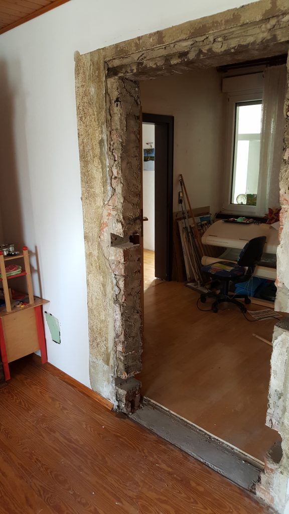Verbindungstür zum neuen Bad im Kinderzimmer, Tür ausgebaut.