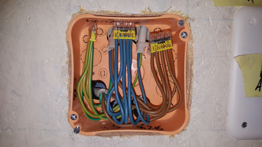 Steckdosenverteiler Westwand, NYM-J 3×2,5mm² kommend auf 4 Leitungen je NYM-J 3×2,5mm² und NYM-J 3×1,5mm²