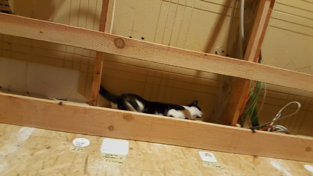 Tschuri inspiziert die Küchendecke, hier an der Südwand