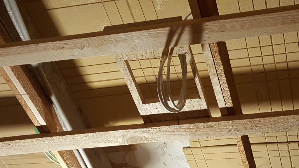 Rahmen für die Revisionsklappe in der Küchendecke, exakt ausgerichtet und fixiert