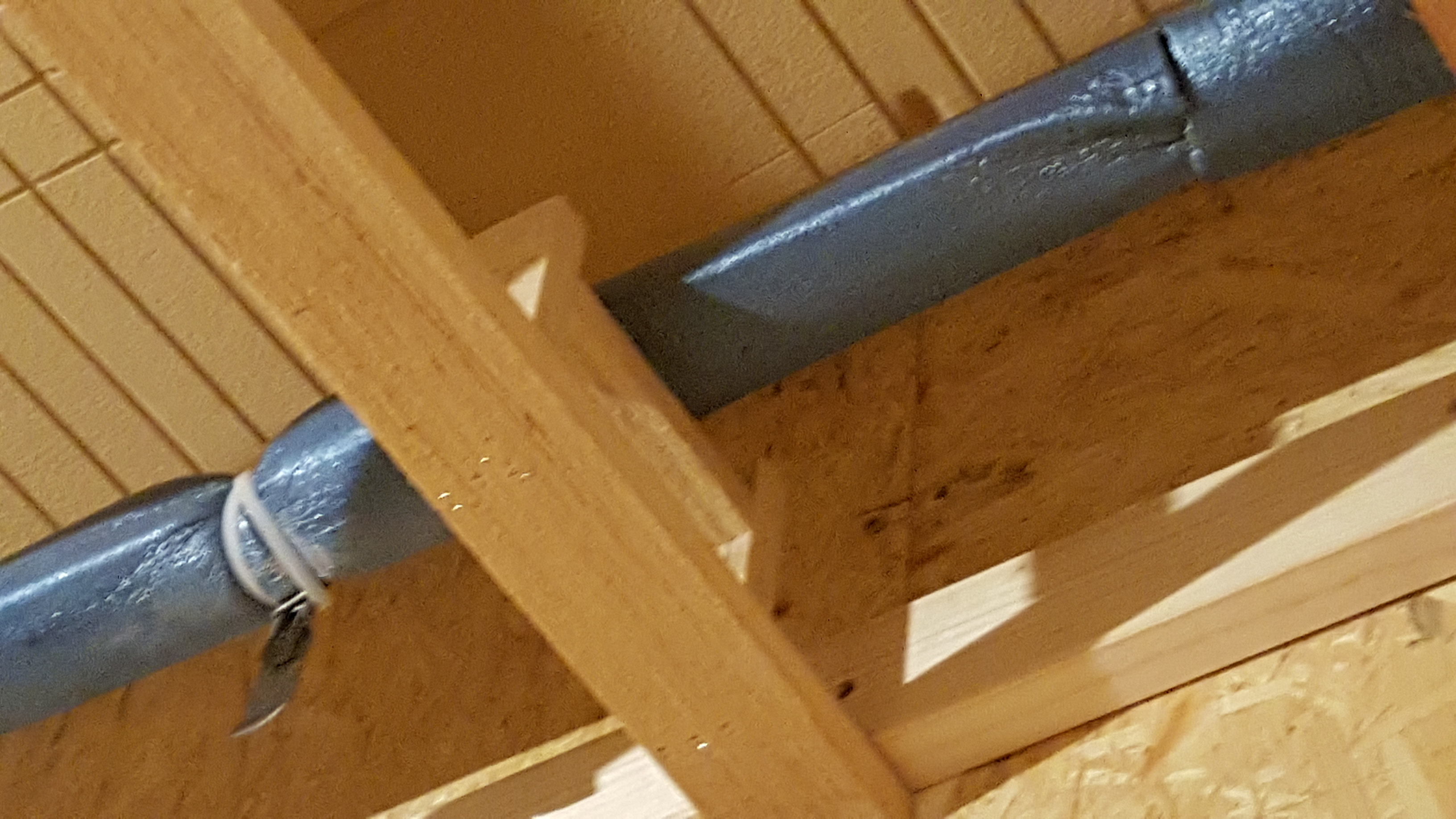 Abwasserleitung DN50 unterbaut, damit sie nicht durchhängt