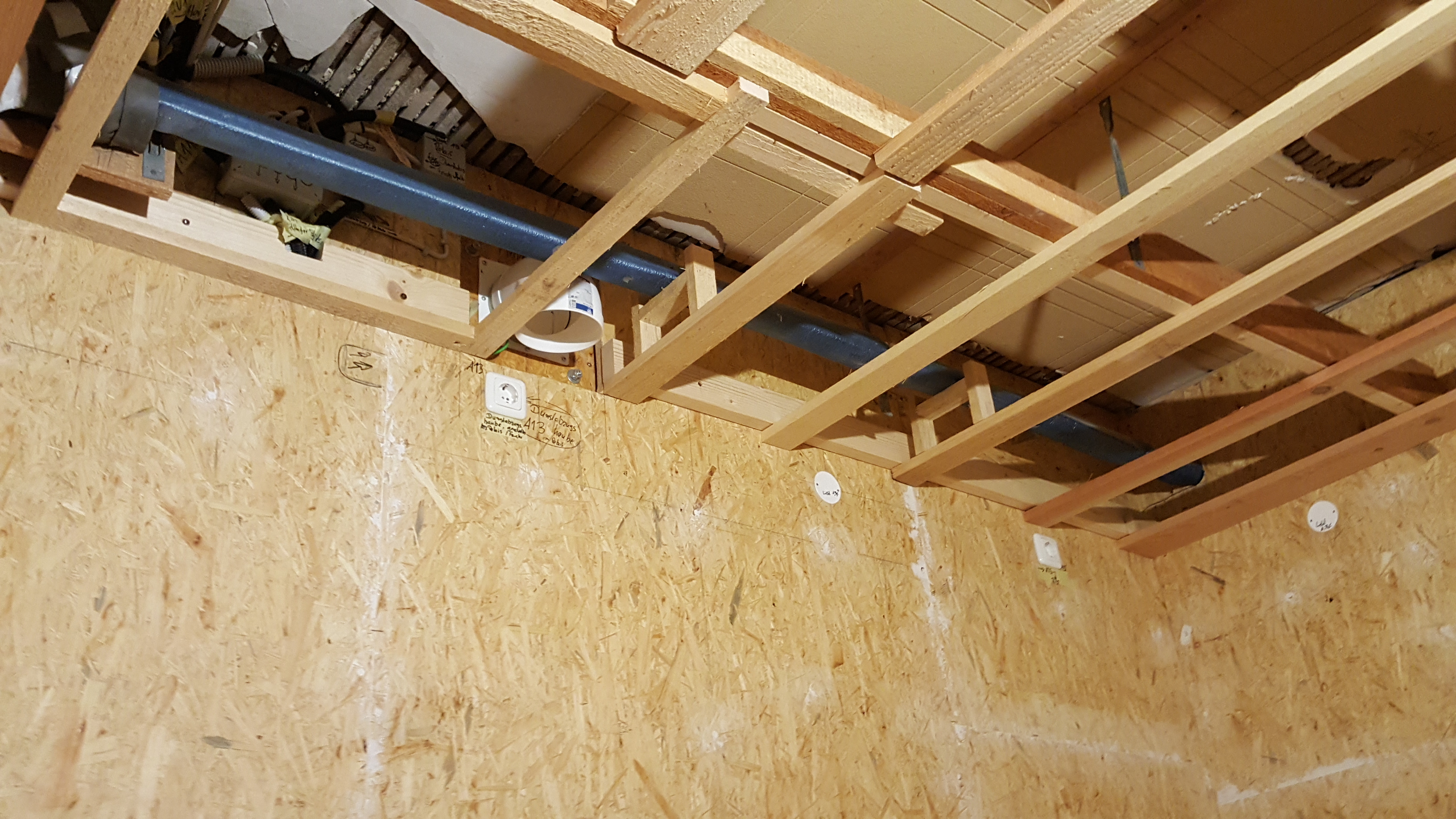 Abwasserleitung DN50 unterbaut, damit sie nicht durchhängt