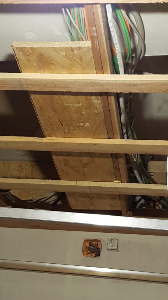Brett über dem Küchentisch in der Zwischendecke, damit man später Schraubhaken sicher verankern kann