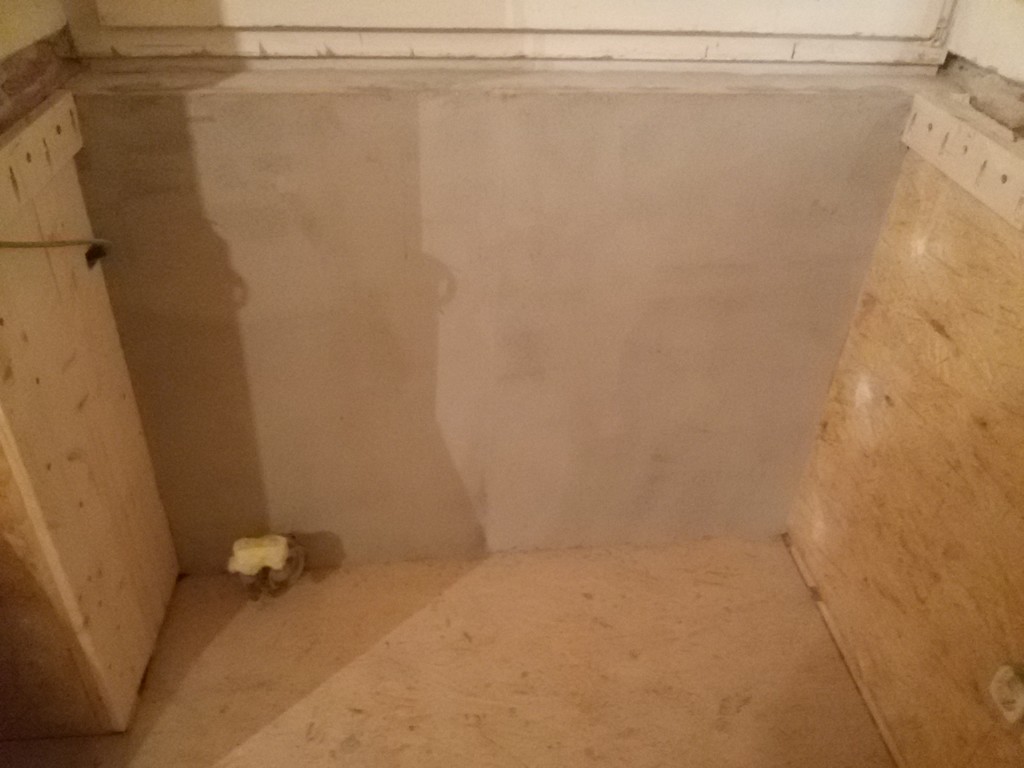 Heizungsnische, Dämmplatten mit Fliesenkleber verputzt