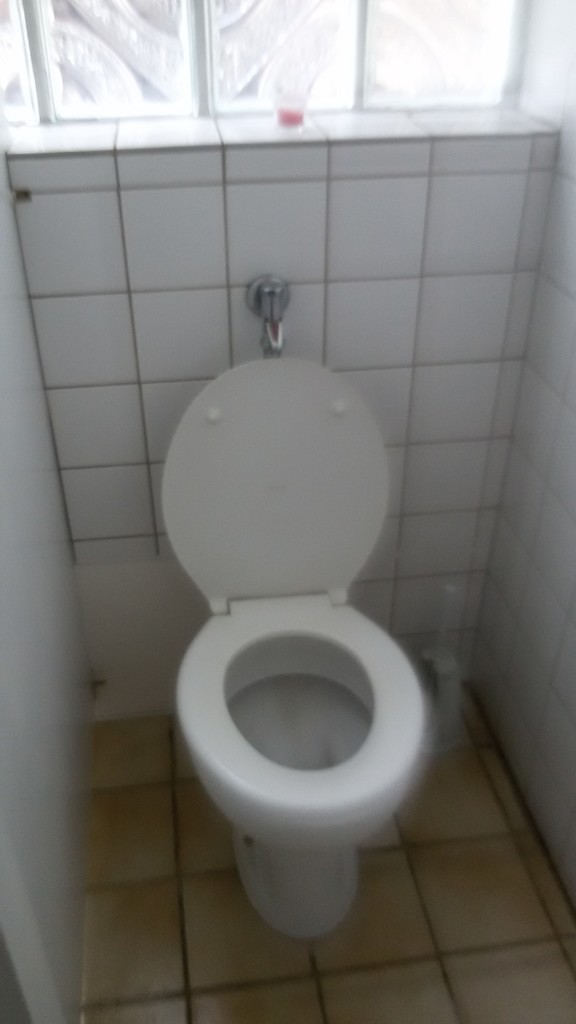 Toilette in knapp 0,8m² großer Kabine (ehem. Herren-WC)