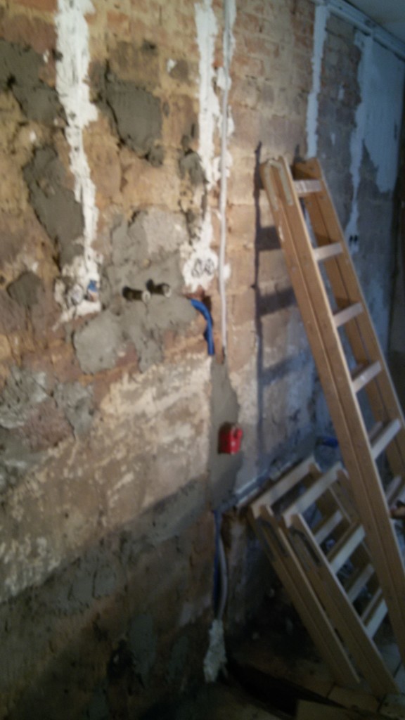 Größere Löcher in der Wand mit Kalkzementputz füllen