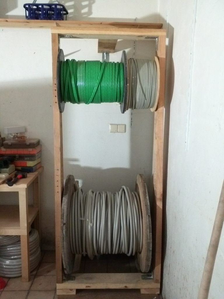 100m NYM-J 5x10mm² und Netzwerkleitung auf Trommel im Technikraum