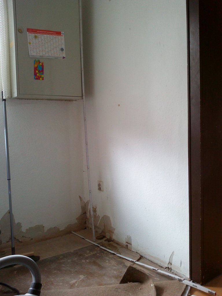 Der alte Zählerkasten im Flur (OG) an der Außenwand. Rechts davon soll eine neue Vorsatzwand für die UV2 gebaut werden.