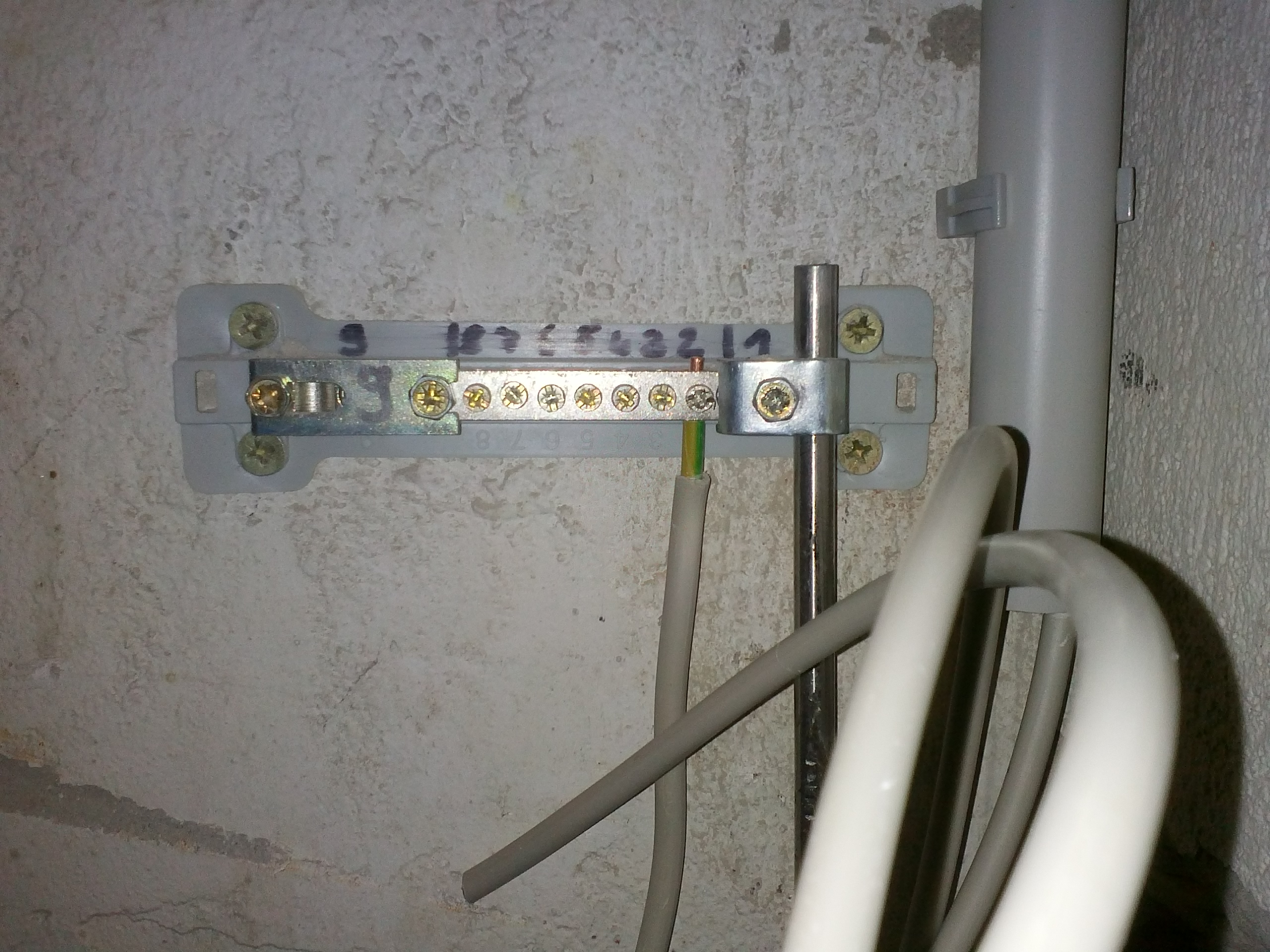 Technikraum: Potentialausgleichsschiene an V2-Stahlstange (10mm), welche außen am Kreuzerder angeschlossen ist.