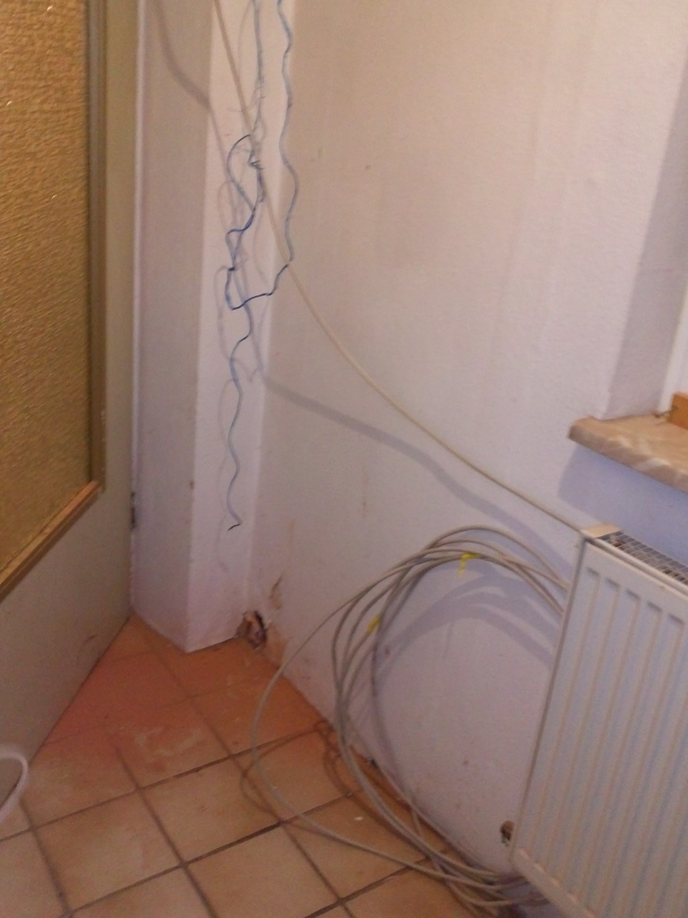 Erdungsleitung, aufgerollt im Flur vor dem Heizungsraum