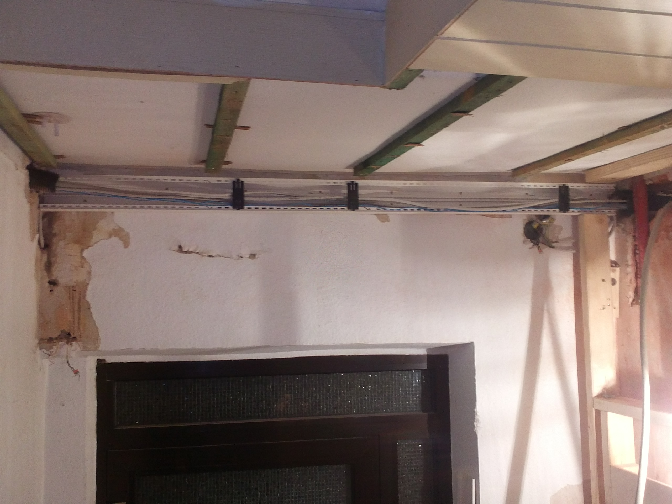 Wanddurchbruch #12 (links) und #8 (rechts) im Flur (EG), Kabelkanal mit Leitungen zur UV3